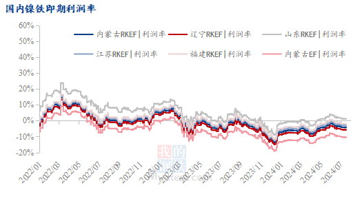 Affected by downstream pressure, the domestic nickel iron market is under pressure and is weakly running. Iron plant costs are significantly reversed, and profits are hit, leading to iron plants taking measures to reduce production to cope with losses. Apart from necessary production, iron plants have a low willingness to purchase existing high-priced nickel ore raw materials. Currently, the highest spot cost of domestic RKEF nickel iron plants has reached 1027 yuan/nickel, with the lowest profit margin at -5.59%.